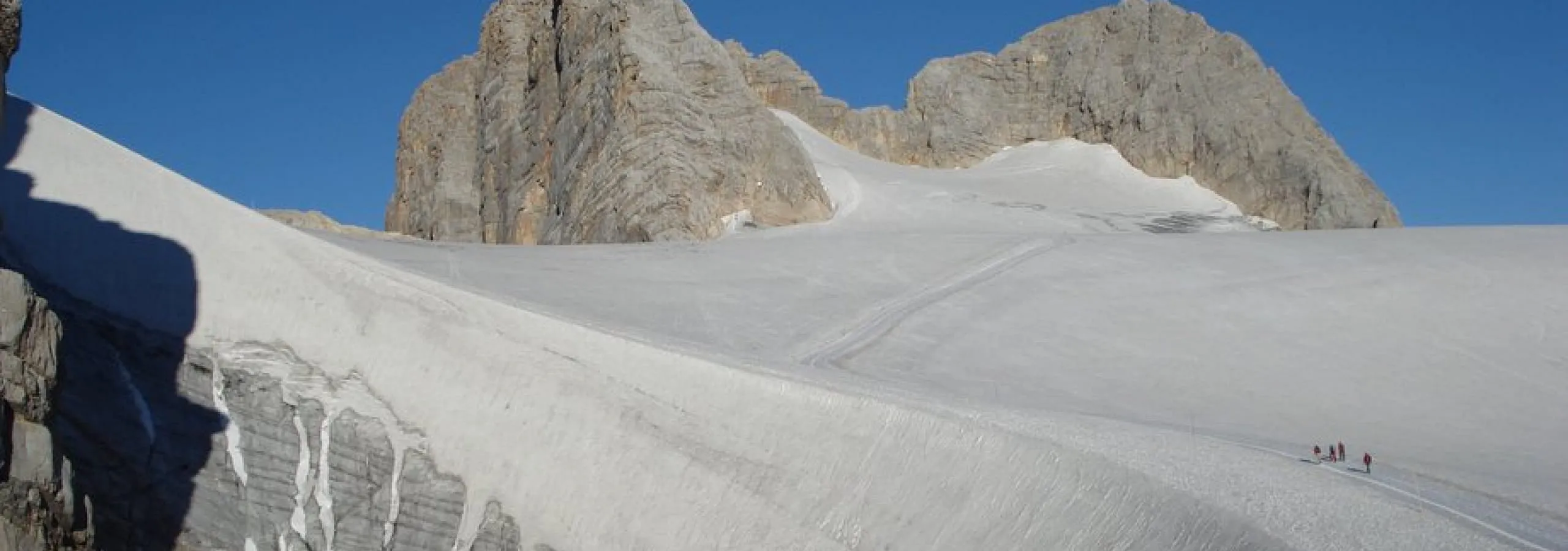 Der Hohe Dachstein ist mit 2995m der höchste Gipfel des Dachsteingebirges und gleichzeitig der höchste Gipfel der österreichischen Bundesländer Steiermark und Oberösterreich. Mit der Dachstein-Gletscherbahn gelangt man zur Bergstation, von dort folgen wir der Spur über den Hallstätter Gletscher Richtung Seethaler Hütte. Kurz vor der Hütte verlassen wir die Spur und gehen weiter zum Einstieg am obersten Gletscherende. Beim Normalweg ist der Überstieg vom Gletscher auf den Felsen je nach Größe der Randkluft erschwert oder gar unmöglich.