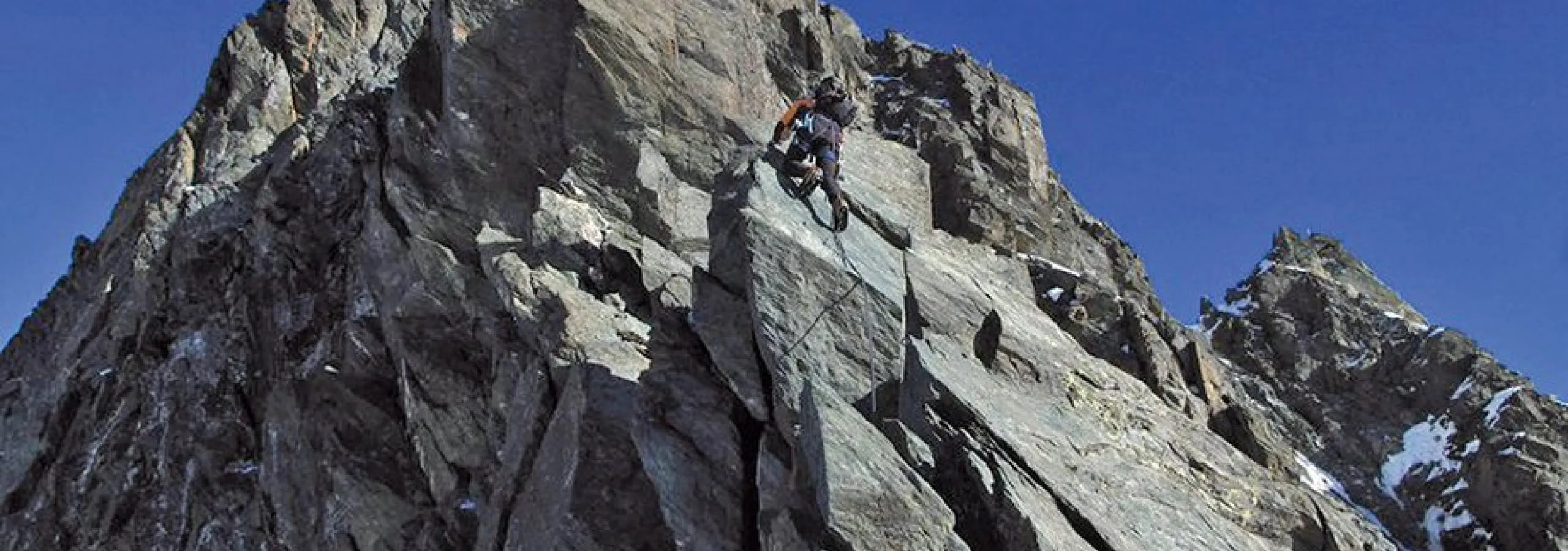 - Trittsicherheit und Schwindelfreiheit im weglosen, fels- und eisdurchsetzten Gelände (wechselnde Passagen mit Steigeisen auf Eis und Fels im 3. Schwierigkeitsgrad)