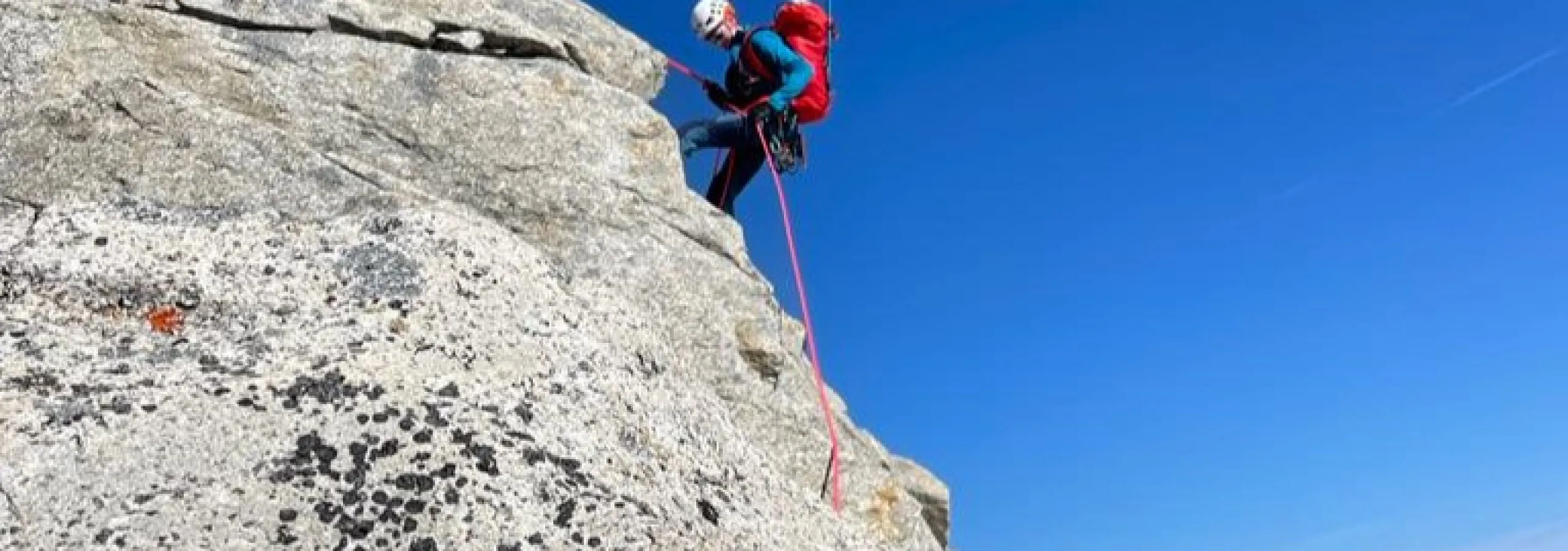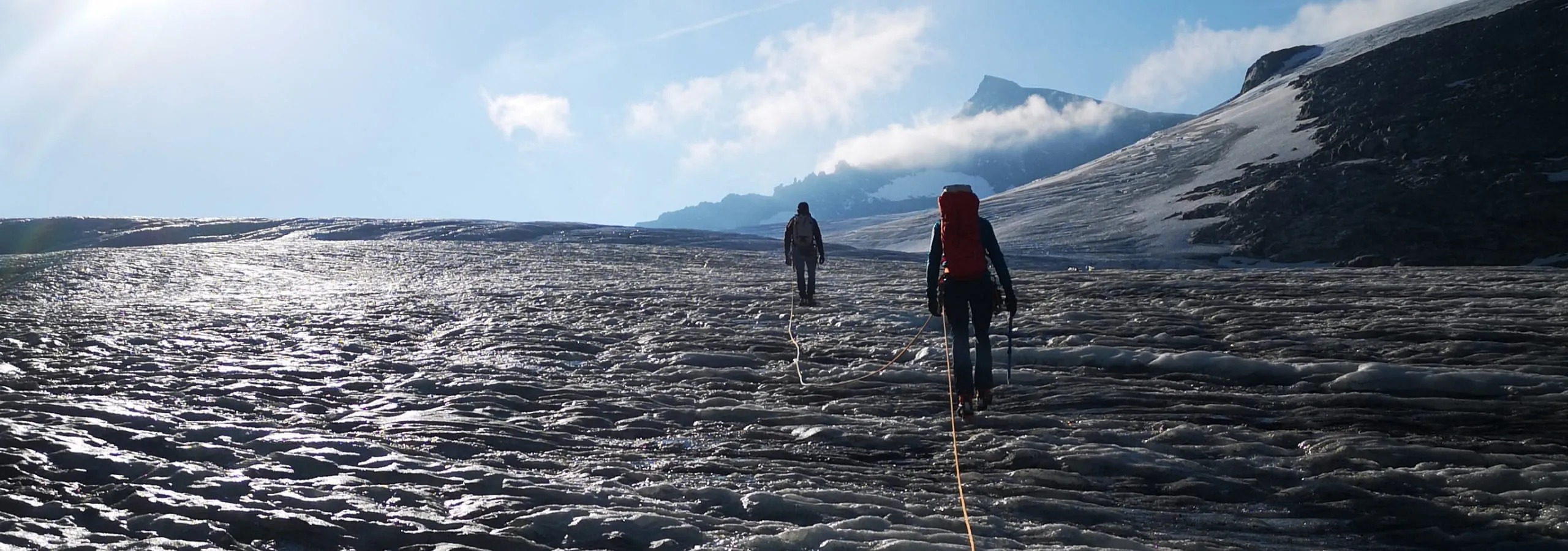 - Beherrschen von Steigeisen- und Pickeltechniken für das Begehen von kurzen Firnflanken mit 40° Steilheit