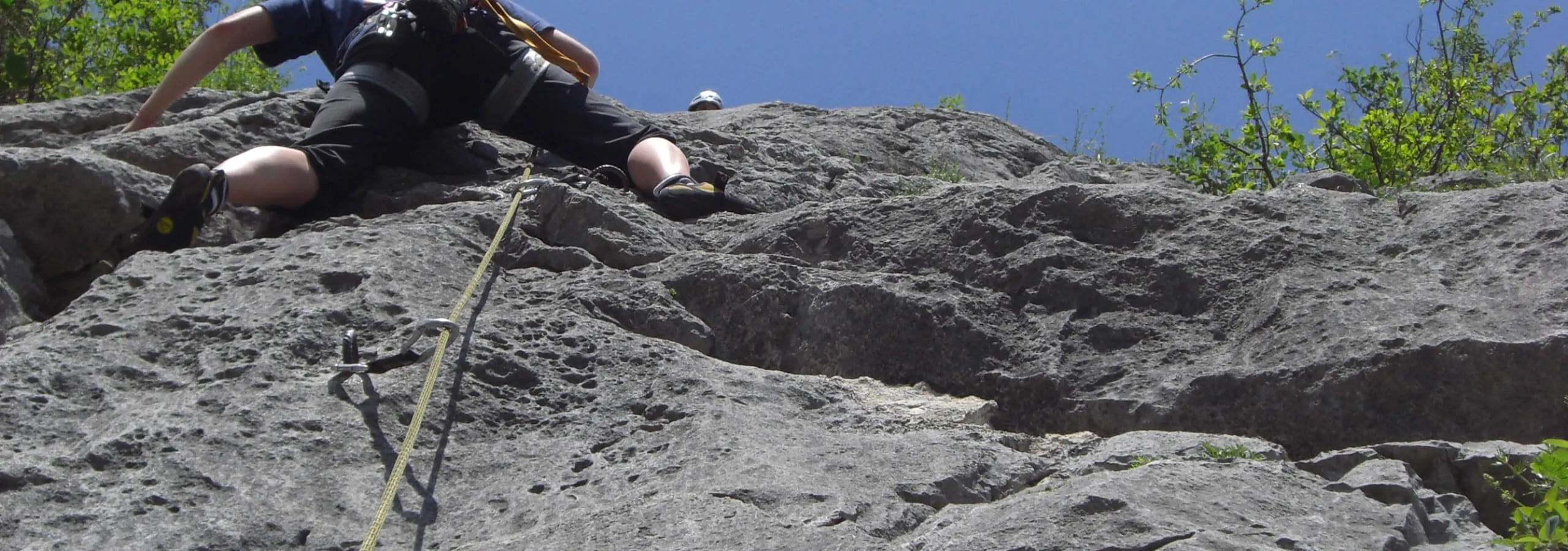 - Kletterkönnen in der Halle min. Schwierigkeitsgrad UIAA 5 im Vorstieg
