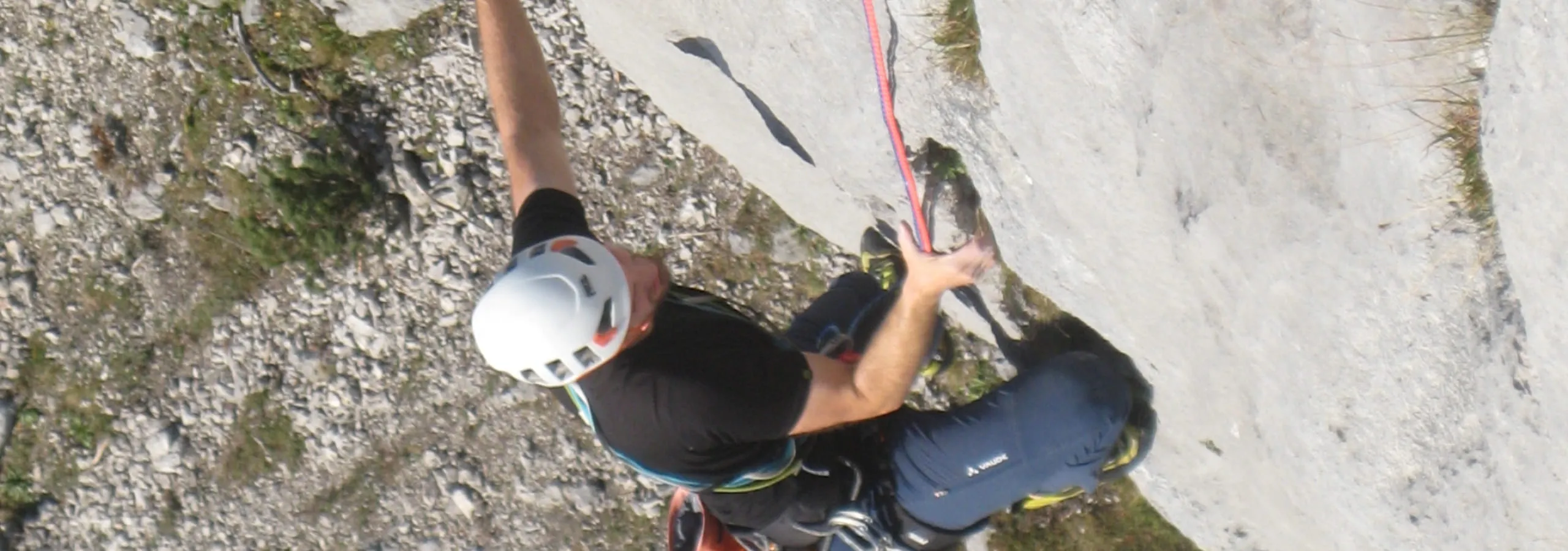 - Erfahrung bei eingebohrten Mehrseillängenrouten ab dem Schwierigkeitsgrad 5 UIAA.