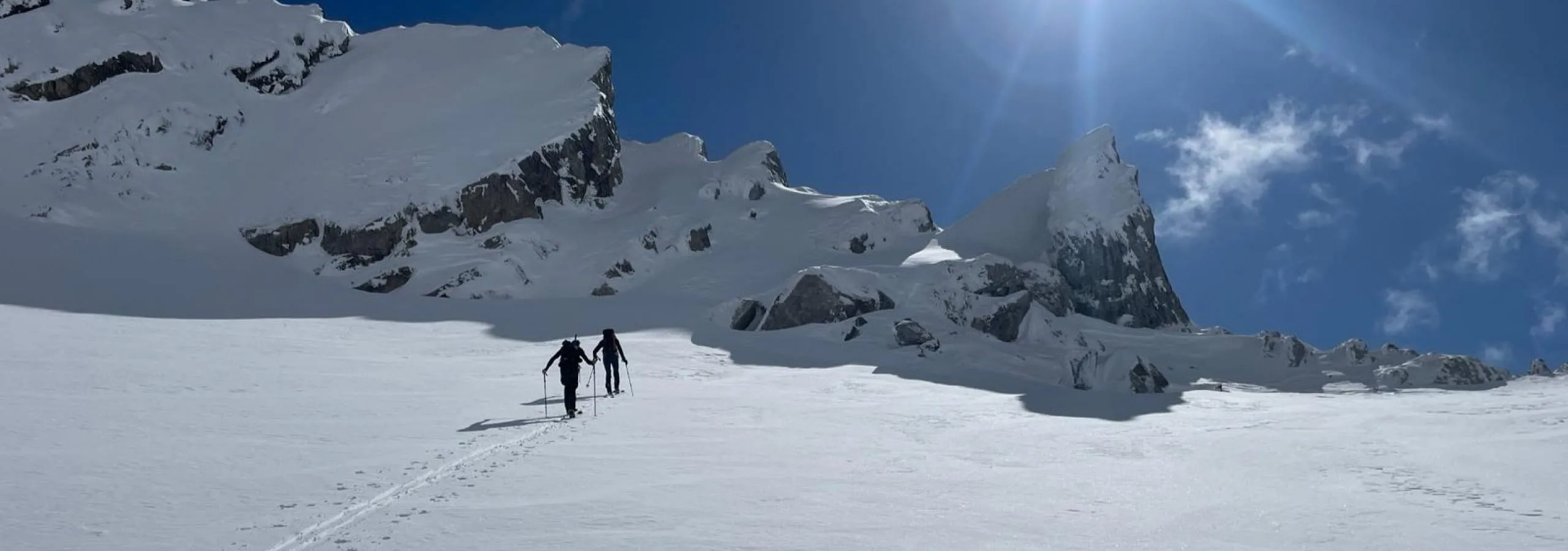 - Sicherer Umgang mit Steigeisen und Pickel in kurzen Fels- & Eispassagen bis zum 2. Schwierigkeitsgrad