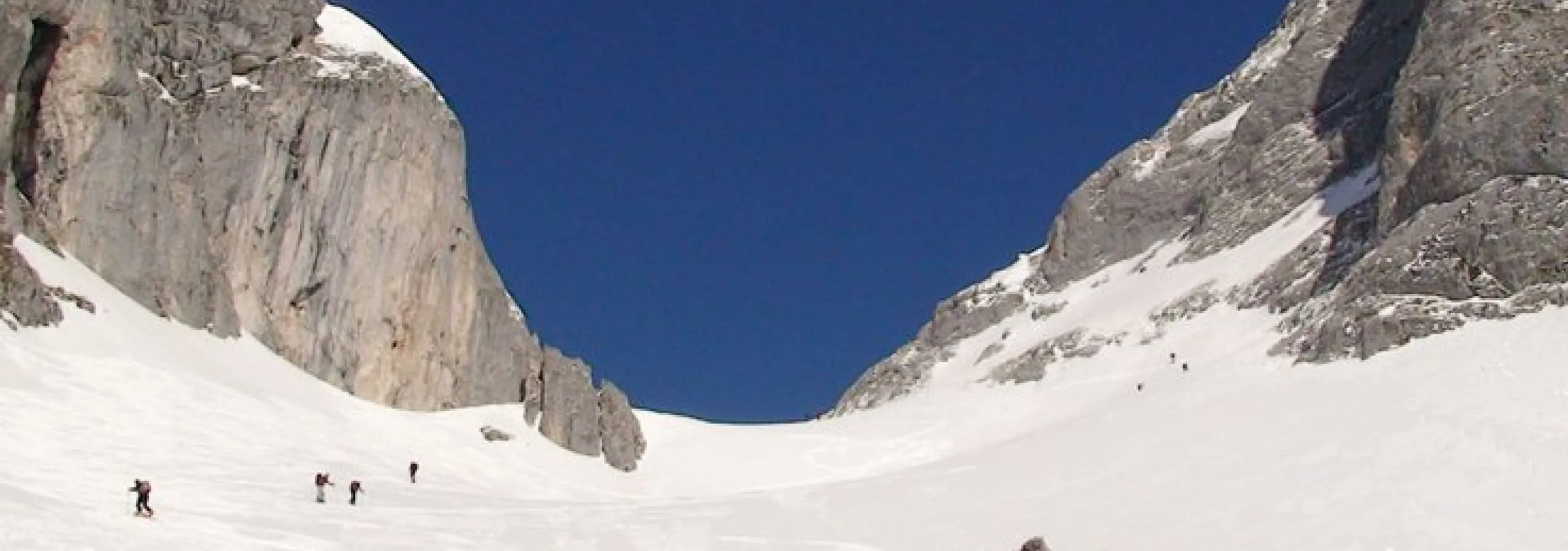 Auf das Tennengebirge führen von allen Seiten steile Kare und Flanken zwischen den Felswänden auf das Plateau und werden als Abfahrten von den Gipfeln benutzt.